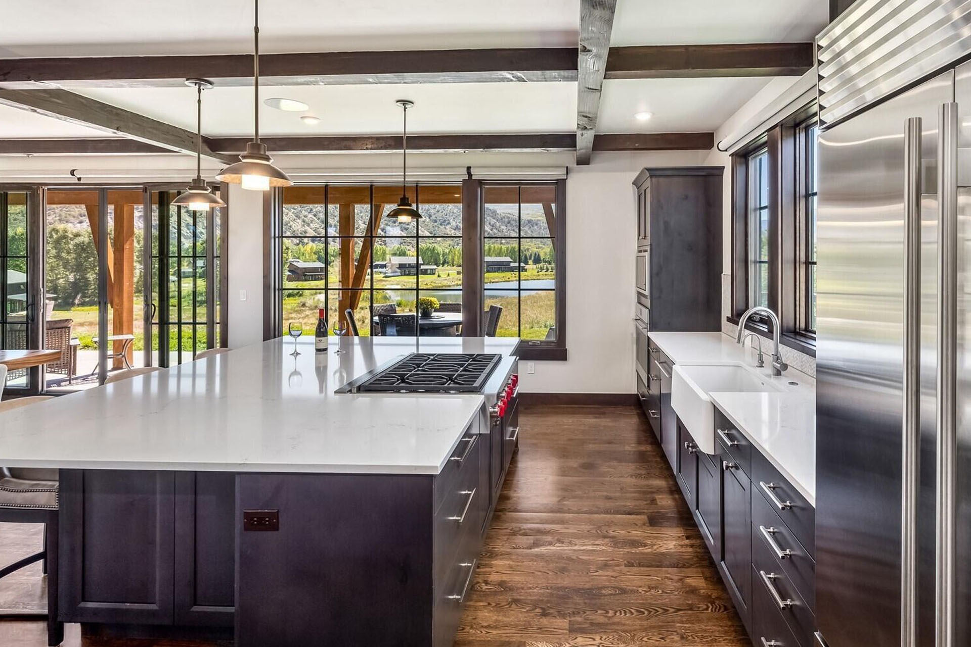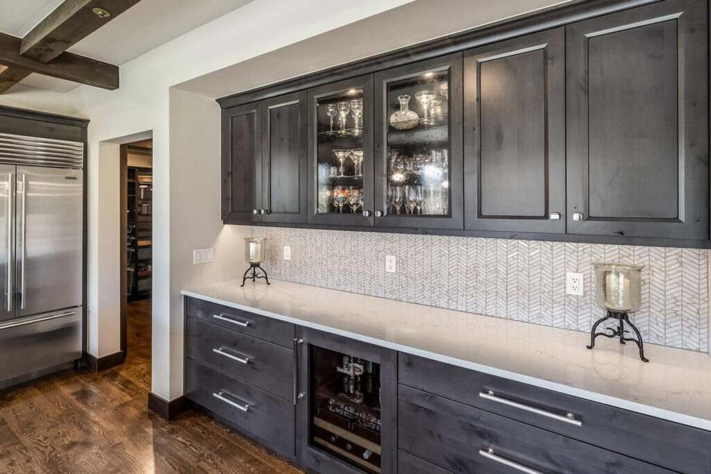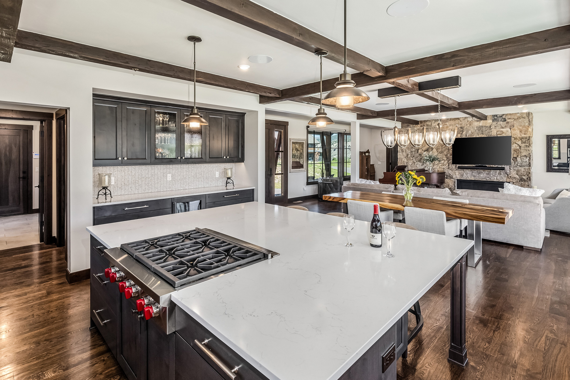 Gourmet Kitchen with Wolf/Subzero Appliances including Beverage Refrigerator, Enlarged Kitchen Island, and Butler’s Pantry.