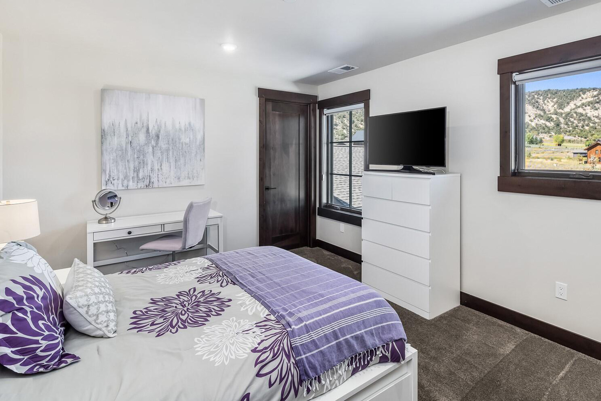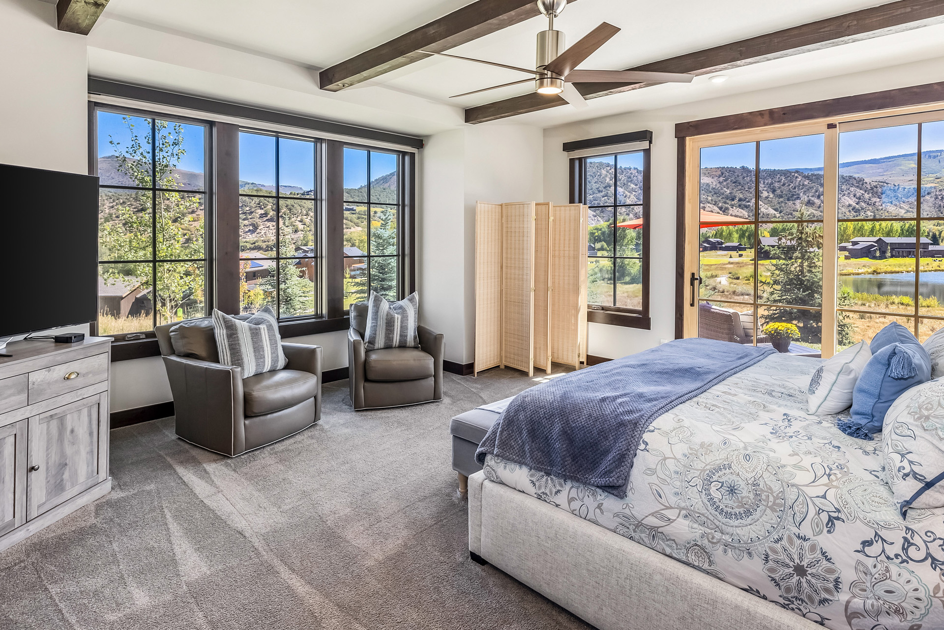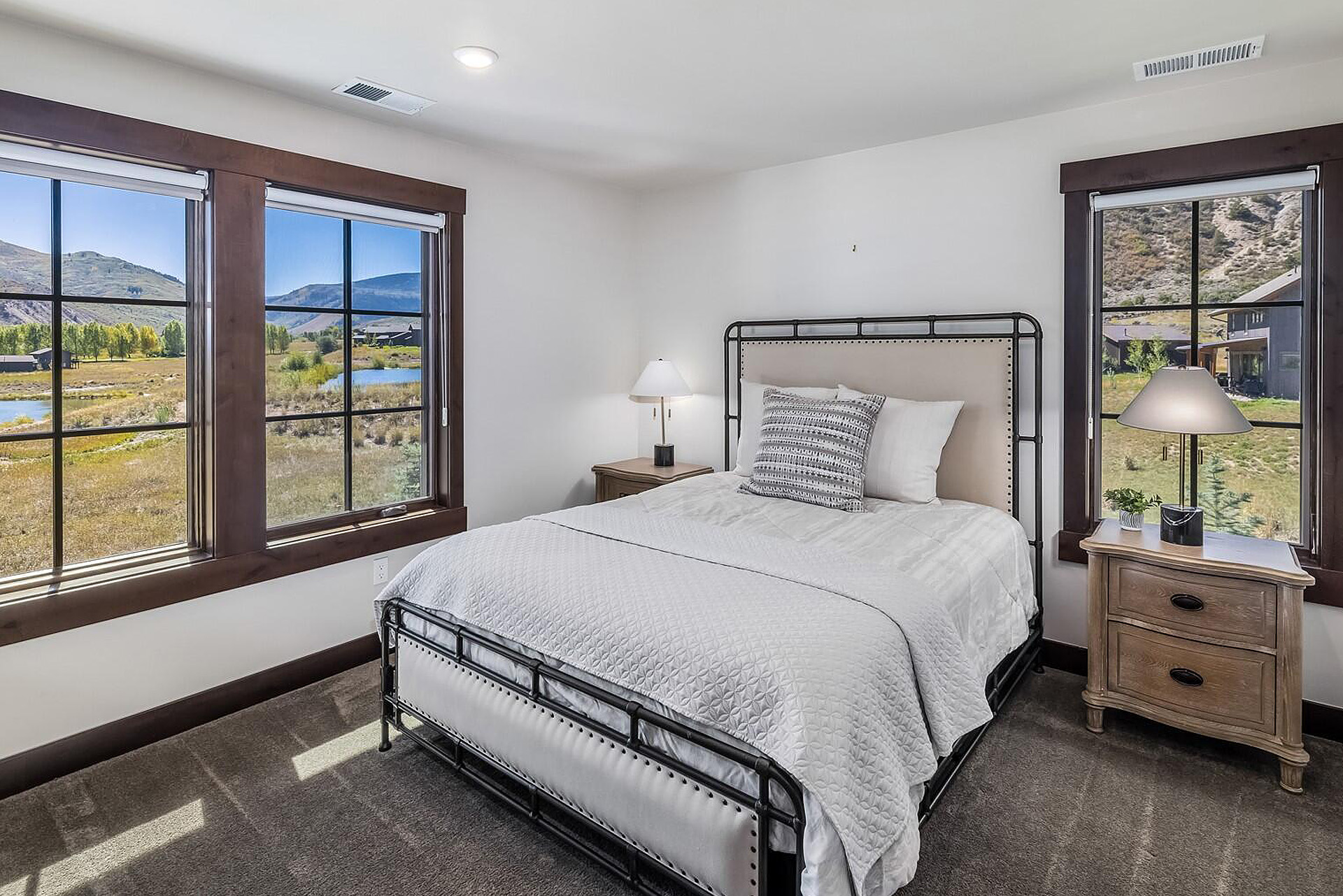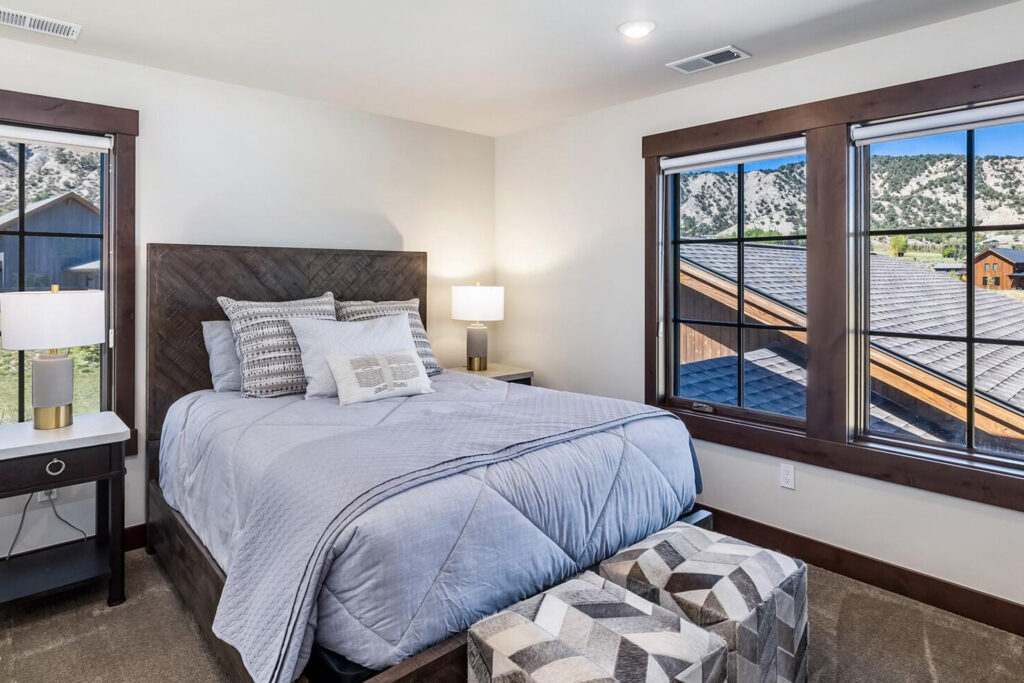 This exceptional residence comes partially furnished with designer pieces, including a live-edge dining table and a baby grand piano. The master bedroom and great room provide access to the upgraded patio, perfect for starlit evenings by the firepit. The second level includes 3 bedrooms, 2 bathrooms, and a den. The heated garage features custom cabinets and built-in workspace. Hunter’s View homes seamlessly blend indoor and outdoor living with expansive windows and modern amenities.