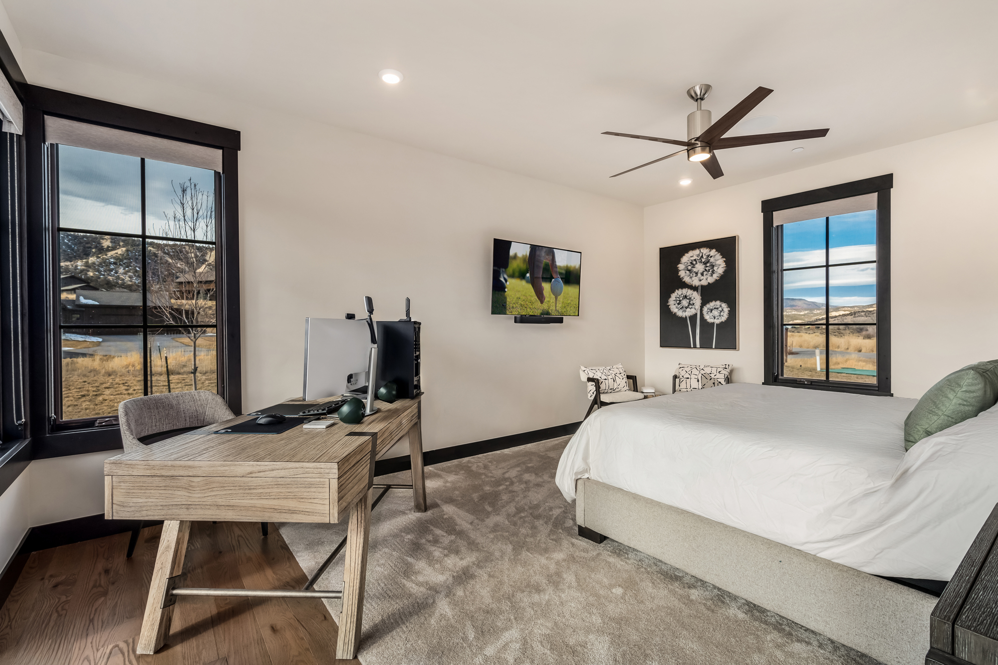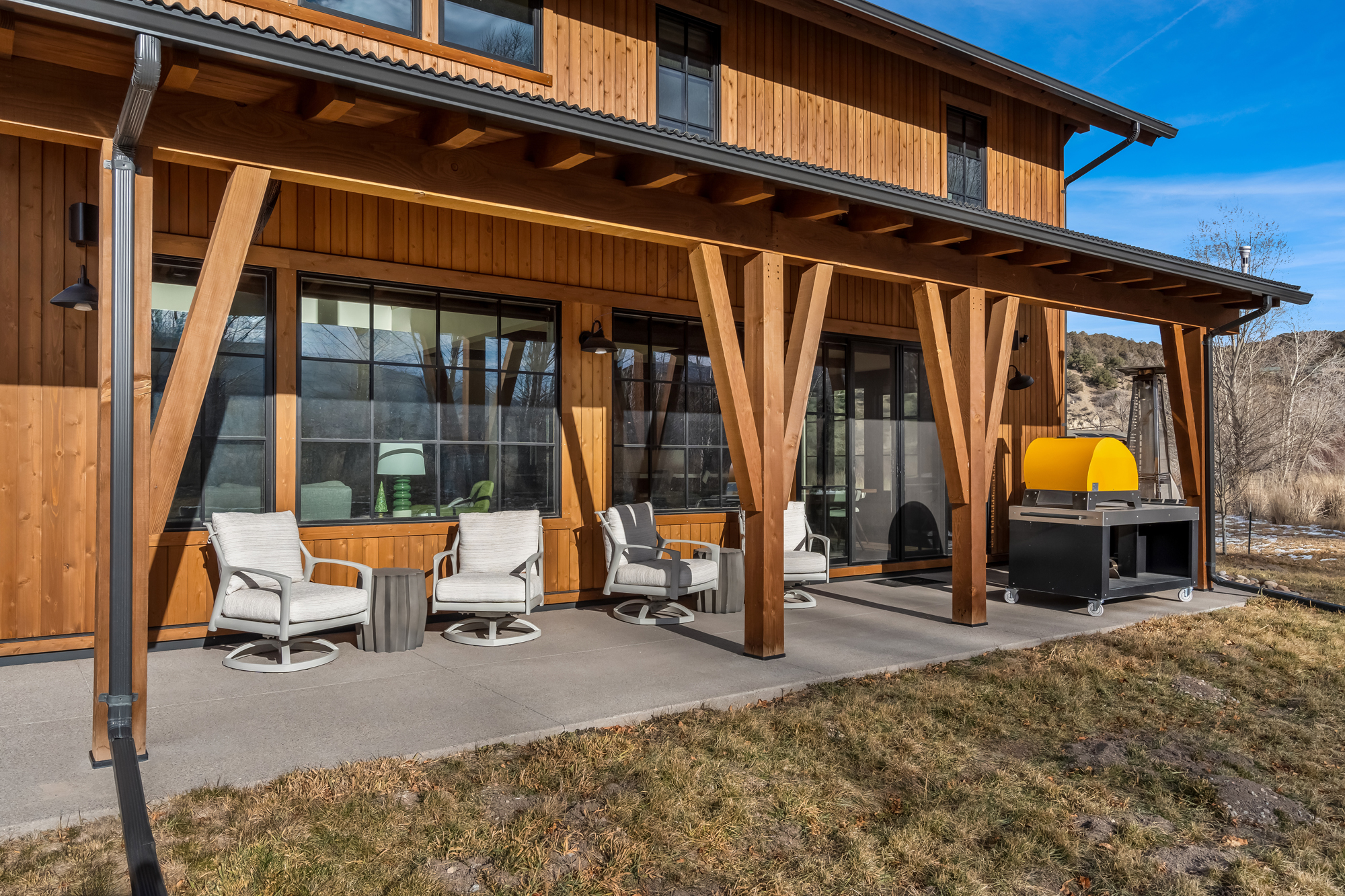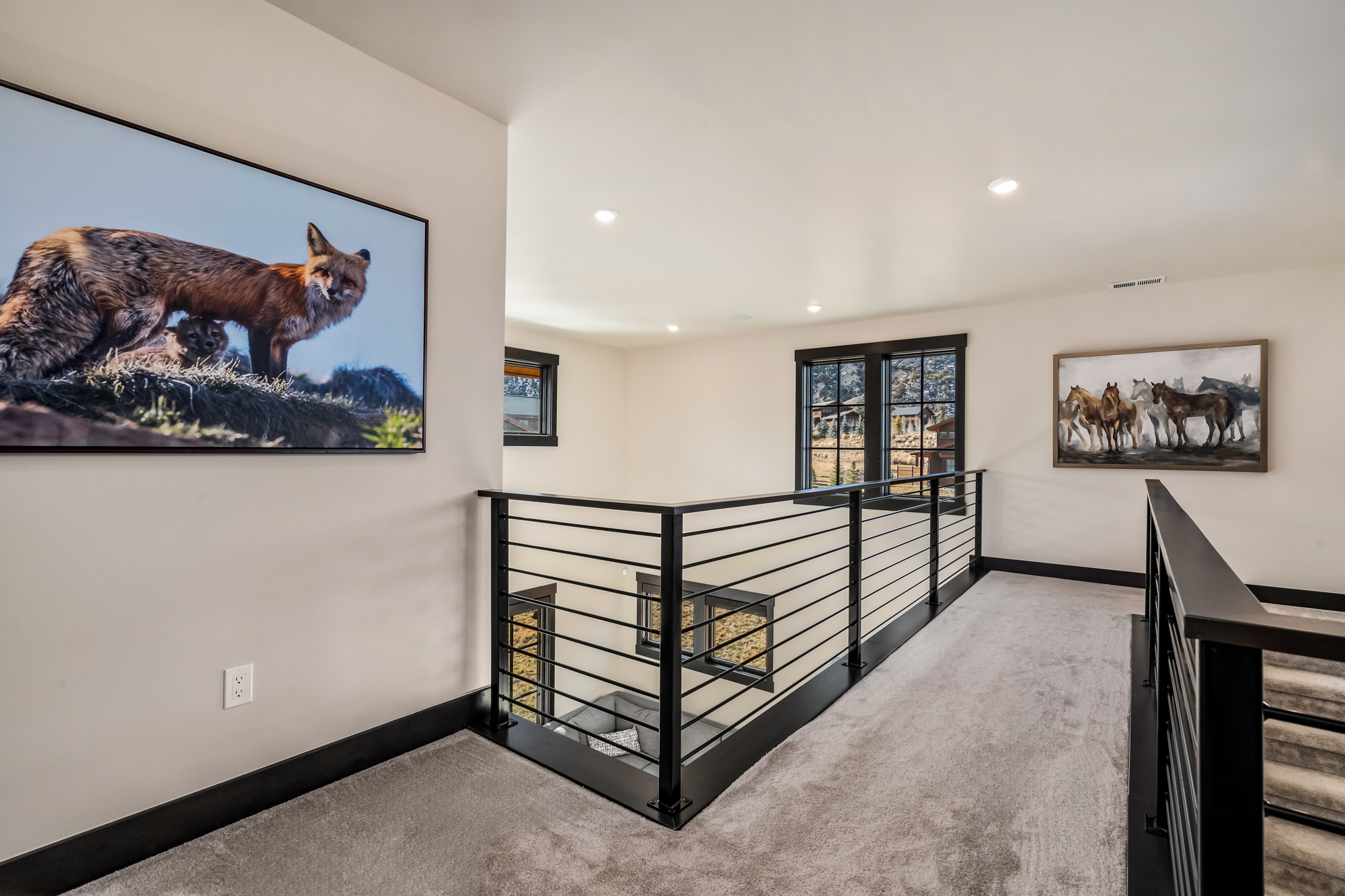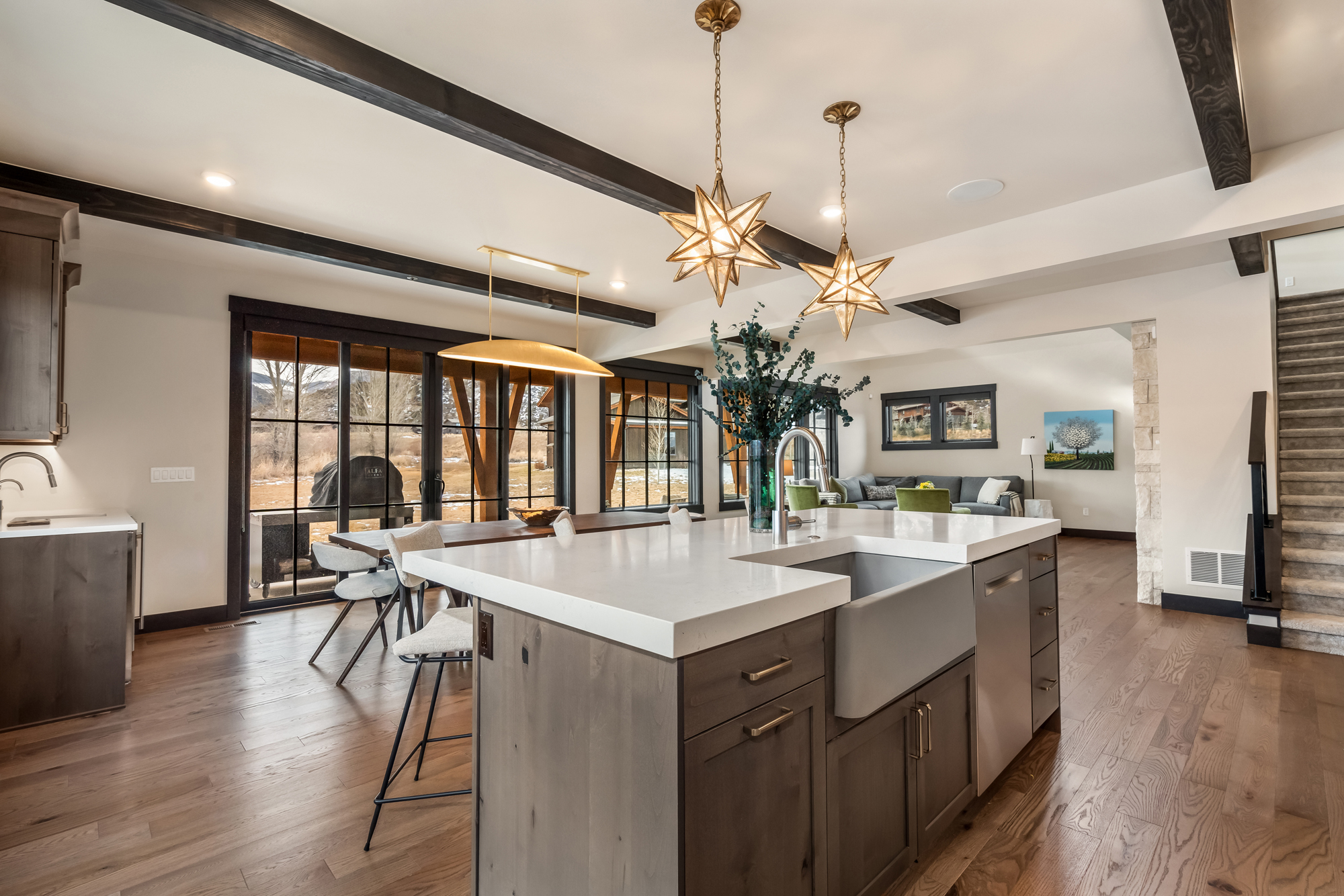 Beautifully positioned on 0.853 acres, this property is surrounded by nature and offers direct access to the Brush Creek Trail, making it a perfect retreat for those who cherish outdoor adventure and serene living. Upon entry, large Sierra Pacific windows bathe the space in natural light, merging indoor comfort with breathtaking scenery outside. The eye-catching Great Room features 17-ft ceilings, and a floor-to-ceiling limestone wall accentuated by a modern gas linear fireplace. Equipped with Bosch appliances, the stylish kitchen blends both form and function, encouraging easy interaction among family and friends, making it a vibrant hub. The main-level primary bedroom includes an ensuite 4-piece bath and private patio. Meanwhile, the second level showcases powder-coated railings that enhance the open, airy feel of the home, featuring three additional bedrooms and two baths.